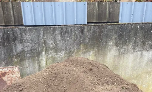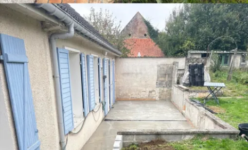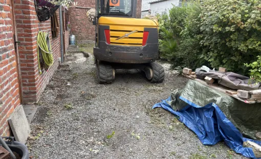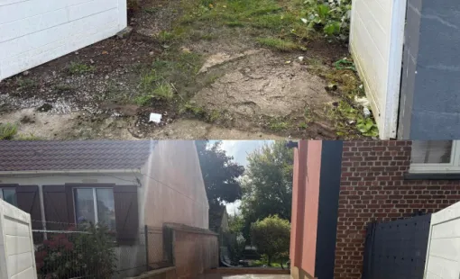 Nouveau chantier en cours à Englefontaine ! Ancienne terrasse démolie Nouvelle dalle béton fraîchement coulée