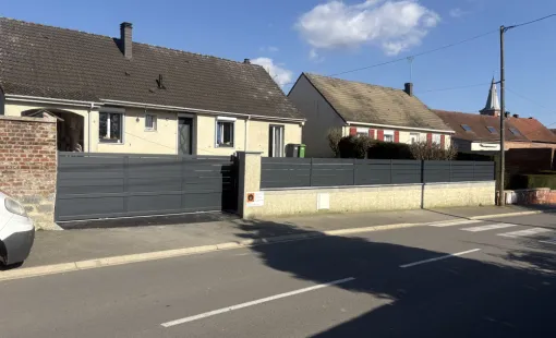 De nouvelles évolutions sur notre chantier à Englefontaine : la clôture en aluminium vient d’être posée sur le muret ainsi que le portail motorisé.